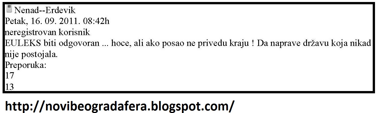 Kao što se u životu se, izgleda, ništa ne dešava slučajno, tako se Srbiji ni Borko Stefanović ne dešava slučajno! Otuda što u Srbiji ništa ne ide bez onih koji tu zapržavaju čorbu decenijama, pa i vekovima. Dakle, taj isti Borko Stefanović ostavio je žicu i započeo da se "edituje" po albanskom eteru kao čovek koji dobro shvata Borisovu srpsku realnost. Da li je to ona Dačićeva podela: ti meni daš pola, a ja tebi vratim to pola i još pola? U šta je Dačić svirao, zna li se, u koferče? Da li je to isto koferče i danas aktuelno, kada iz Dačićevih usta progovara glas razuma!? Za Srbe, čini se, nema razlike, jer kada shvate realnost i kada tu realnost ne shvate, obavezno završe kao izbeglice. Zato naši političari, počev od predsednika Republike Tadića, ministra Ivice Dačića, pa nekada Nebojše Čovića, a danas Borka Stefanovića, izbegavaju da ne izbegnu "realnost" u zbegu.